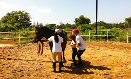 学习骑马的过程,就是骑手从不懂得如何运用自身重心去配合马体重心,到熟知马体重心变化的规律并能够熟练加以配合的过程,同时包括一些指令传讯技巧的掌握。所以,对于情绪焦躁的孩子,由于马儿的存在,必须学会克制自己的脾性;而对于生性娇羞的小朋友,骑马能够加添充足的勇气。