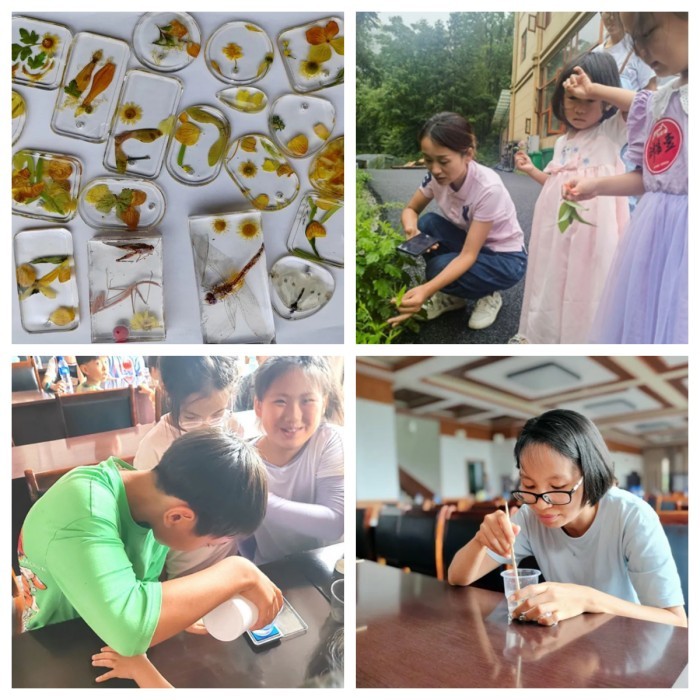 面对着各种参天大树,不得不让我们想到《琥珀》这篇课文。那就好好的体验感受一下琥珀的形成,采摘花瓣、捕捉昆虫,制作属于自己独有的独一无二的琥珀挂饰。
