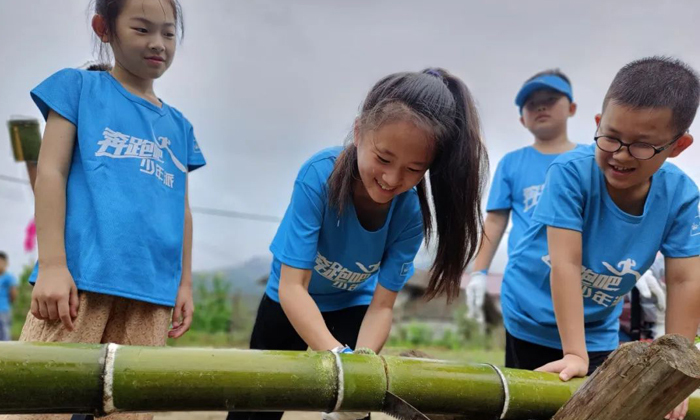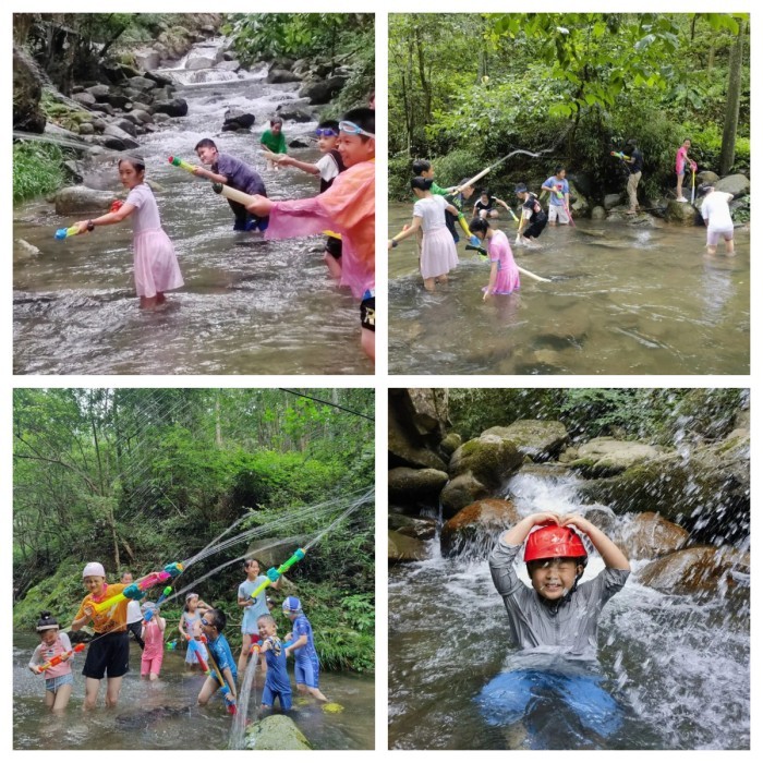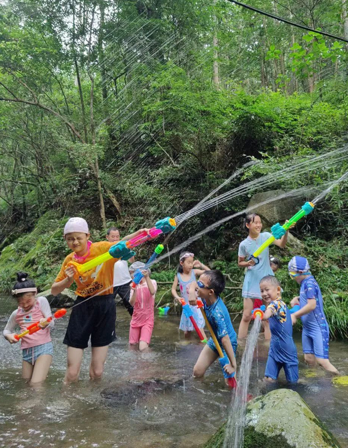 参天大树下的泉水溪流潺潺,孩子们在教练组的带领下,一同逆流而上,寻觅泉水之源。