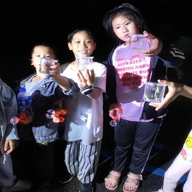 伴随乡村微弱灯光,星空更加璀璨,打起手电,拿起昆虫盒与昆虫夹,一起感受夜晚抓昆虫的乐趣,发现夜间精灵们的奇妙王国。抬头仰望,寻找最亮的一颗星星。配合灯光一起来一场“灯光秀”,“怪兽”争霸战等。